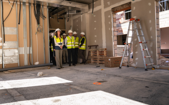 En el interior, la distribución de espacios progresa de forma desigual entre plantas, mientras continúan los trabajos de instalaciones eléctricas, climatización y saneamiento.