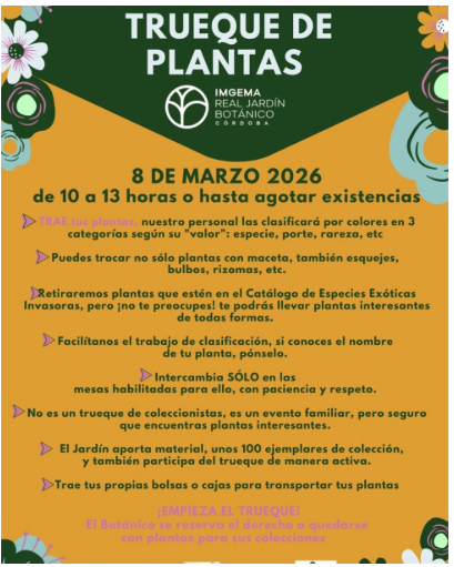 El Real Jardín Botánico de Córdoba celebrará los próximos 7 y 8 de marzo la edición número 6 de la Feria de Plantas de Colección y el sexto Mercado de Trueque de Plantas, organizados junto a la Sociedad de Amigos del Jardín Botánico.