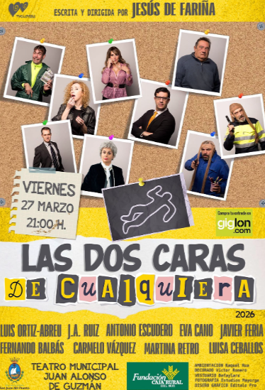 Con motivo del Día Mundial del Teatro, el municipio onubense acogerá este viernes 27 a las 21:00 horas el estreno de la comedia teatral “Las dos caras de cualquiera”, una propuesta de la compañía Twolovers Productora que promete humor, reflexión y cercanía con el público.
