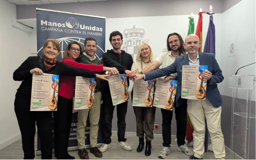 Por su parte, la delegada de Manos Unidas en Jaén, Lidia Casado, expresó su agradecimiento al Patronato de Cultura por apoyar esta iniciativa solidaria. Señaló que este evento supone una gran oportunidad para impulsar los proyectos de la organización, ya que los fondos recaudados contribuirán a iniciativas en diferentes países: educación en Filipinas, acceso al agua en Ecuador, atención sanitaria en Etiopía y el desarrollo de una cooperativa agraria de mujeres en Bolivia. Además, recordó que todo ello se enmarca en el lema de este año, centrado en la lucha contra el hambre. Casado también agradeció el respaldo del Colegio de Gestores Administrativos y la participación de las tres tunas, e invitó a la ciudadanía a asistir y disfrutar de la cita el próximo 14 de marzo.