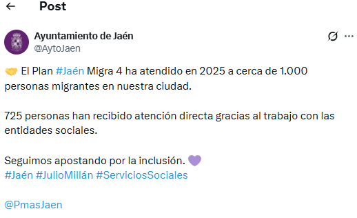 El Ayuntamiento de Jaén ha realizado un balance del programa municipal ‘Jaén Migra 4’, que en 2025 experimentó, según el equipo de gobierno, “un importante reimpulso”.