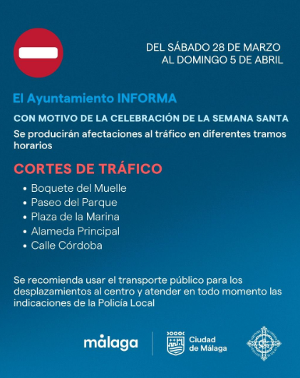 El Ayuntamiento de Málaga ha informado sobre el dispositivo especial de tráfico que se pondrá en marcha con motivo de la Semana Santa 2026, una de las celebraciones más destacadas del calendario de la ciudad.