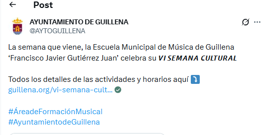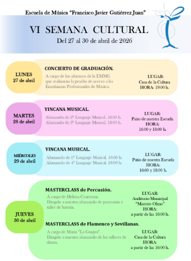 La Escuela Municipal de Música de Guillena ‘Francisco Javier Gutiérrez Juan’ celebrará la próxima semana su VI Semana Cultural, una cita ya consolidada en el calendario local que reunirá a alumnado, profesorado y vecinos en torno a la música y la cultura.