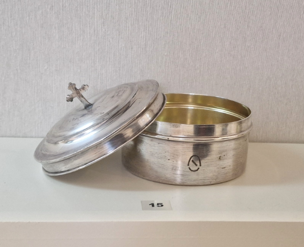 un portaviático procedente de la cripta del antiguo Hospital de la Divina Providencia, fechado entre finales del siglo XIX y comienzos del XX.
