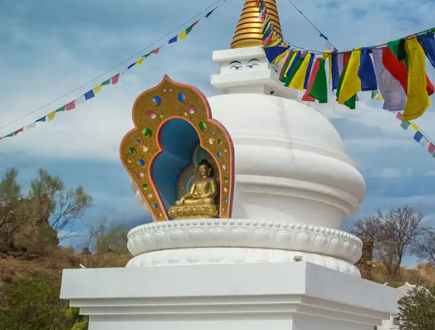 Las estupas budistas son monumentos que simbolizan paz, prosperidad y armonía, además de servir como espacios de meditación. La de Kalachakra destaca por haber sido una de las primeras construidas fuera de Asia, lo que subraya su relevancia dentro de la expansión del budismo tibetano en Europa.