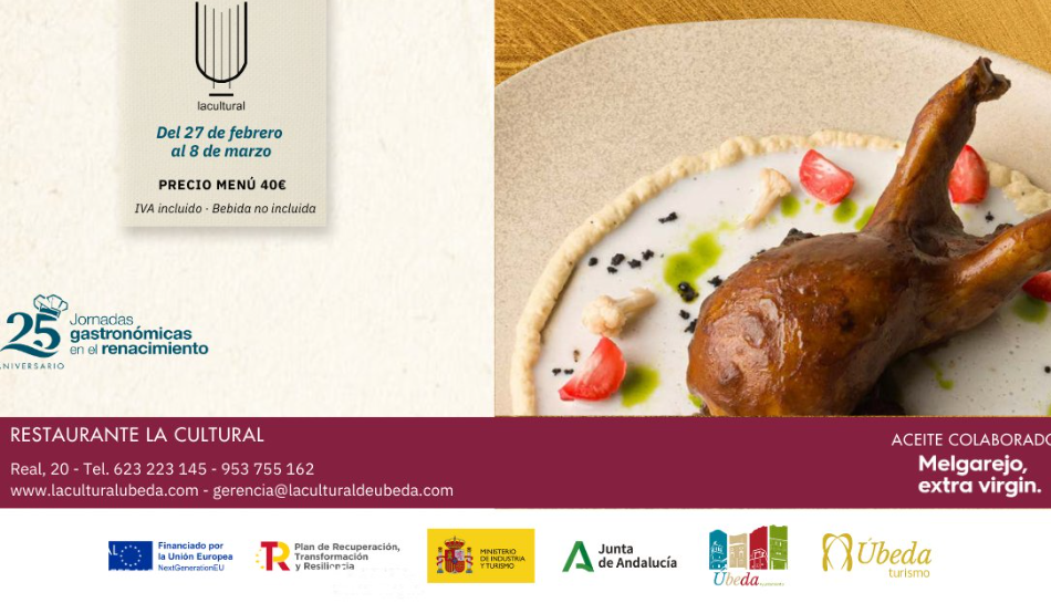 Del 27 de febrero al 8 de marzo el, Restaurante La Cultural y Restaurante Ermita Madre de Dios presentan sus menús renacentistas para disfrutar de una experiencia gastronómica única.