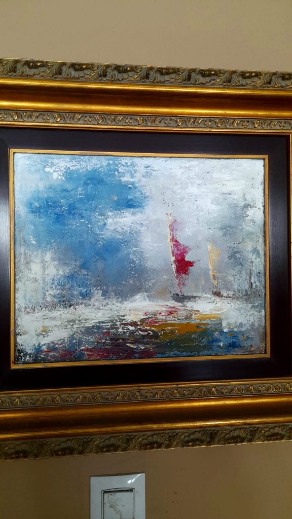 Muchas personas dicen “Bueno, el mar tiene que pintarse de color azul” A lo que yo respondo que no, ya que no veo que el mar sea azul. Al lado hay otro cuadro del mar, pero volvemos al mismo tema: son marinas diferentes porque no representan el mismo mar… Lo mío es el movimiento.