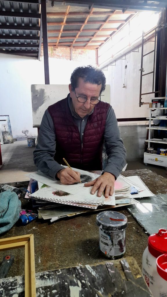 Horacio, natural de Bollullos (Huelva), es un pintor y creador incansable cuya trayectoria vital y artística destaca por su intensidad y constancia.