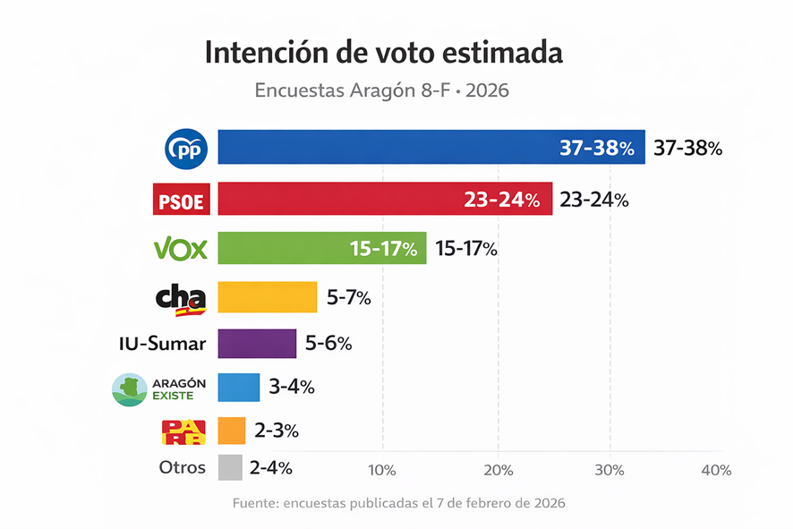 Aunque el recuento completo aún estaba en curso a media jornada, los datos disponibles y sondeos apuntan a una victoria del Partido Popular (PP) bajo la dirección de Jorge Azcón, aunque sin una mayoría absoluta clara. Este escenario podría obligar a los populares a buscar acuerdos, previsiblemente con Vox, para garantizar la gobernabilidad.