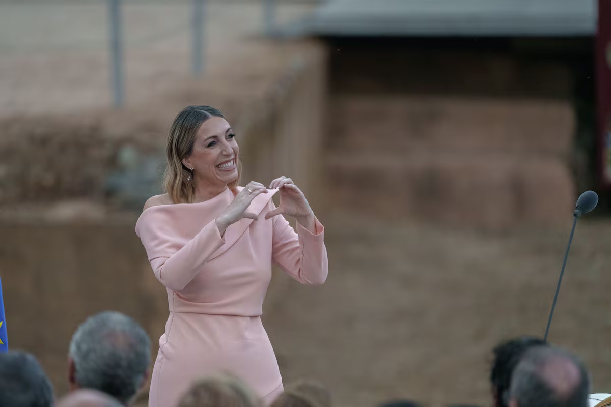 La presidenta de la Junta de Extremadura, María Guardiola, toma posesión de su cargo, en el Anfiteatro Romano de Mérida este sábado. Javier Cintas (Europa Press). El País.