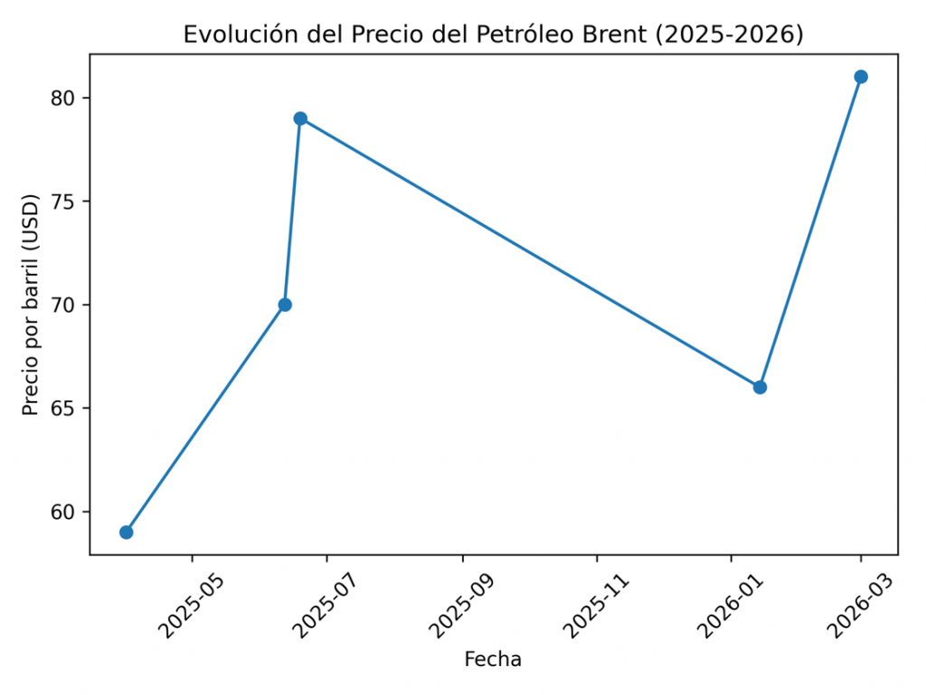 La tensión sobre el Estrecho de Ormuz —por donde transita cerca del 20% del petróleo mundial— ha disparado la volatilidad del crudo. Cada repunte del Brent se traduce en: